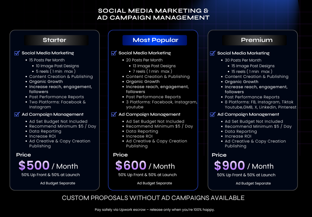 We combine premium creative work, data-driven strategy, fast communication, and USA-focused expertise with a dedicated team behind every project.