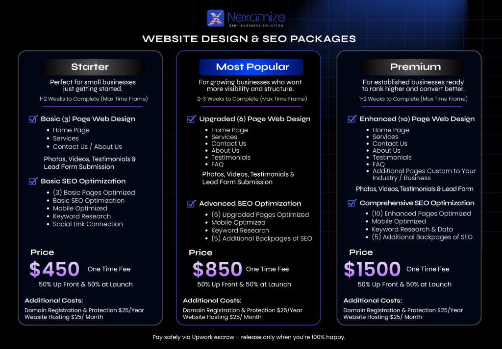 Book a strategy call. We’ll review your goals, analyze your online presence, and recommend the right package for your growth.